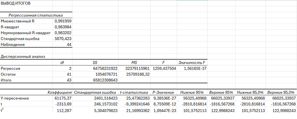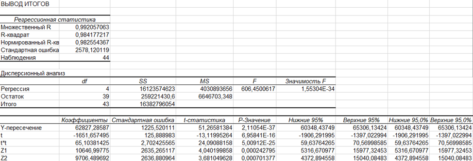 Рис. 5. Вывод итогов регрессионного анализа улучшенной модели регрессии (3)