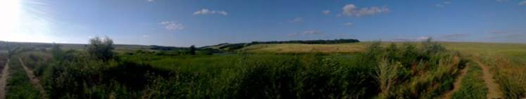 Рис. 10 Виды ГТС и водоема, без названия, в 2 км западнее с. Глубинный: а) – вид 1; б) – вид 2; в) – вид 3.