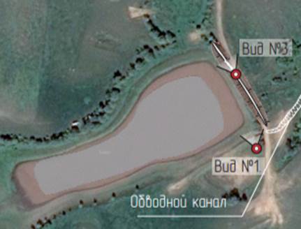 Гидротехническое сооружение водоема № 9. Местоположение: в с. Кубанка, Тоцкий район, Оренбургская обл. Показано на рис. 3.